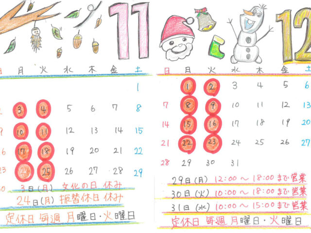 2025年11月-12月の営業情報 [年末年始変則営業]